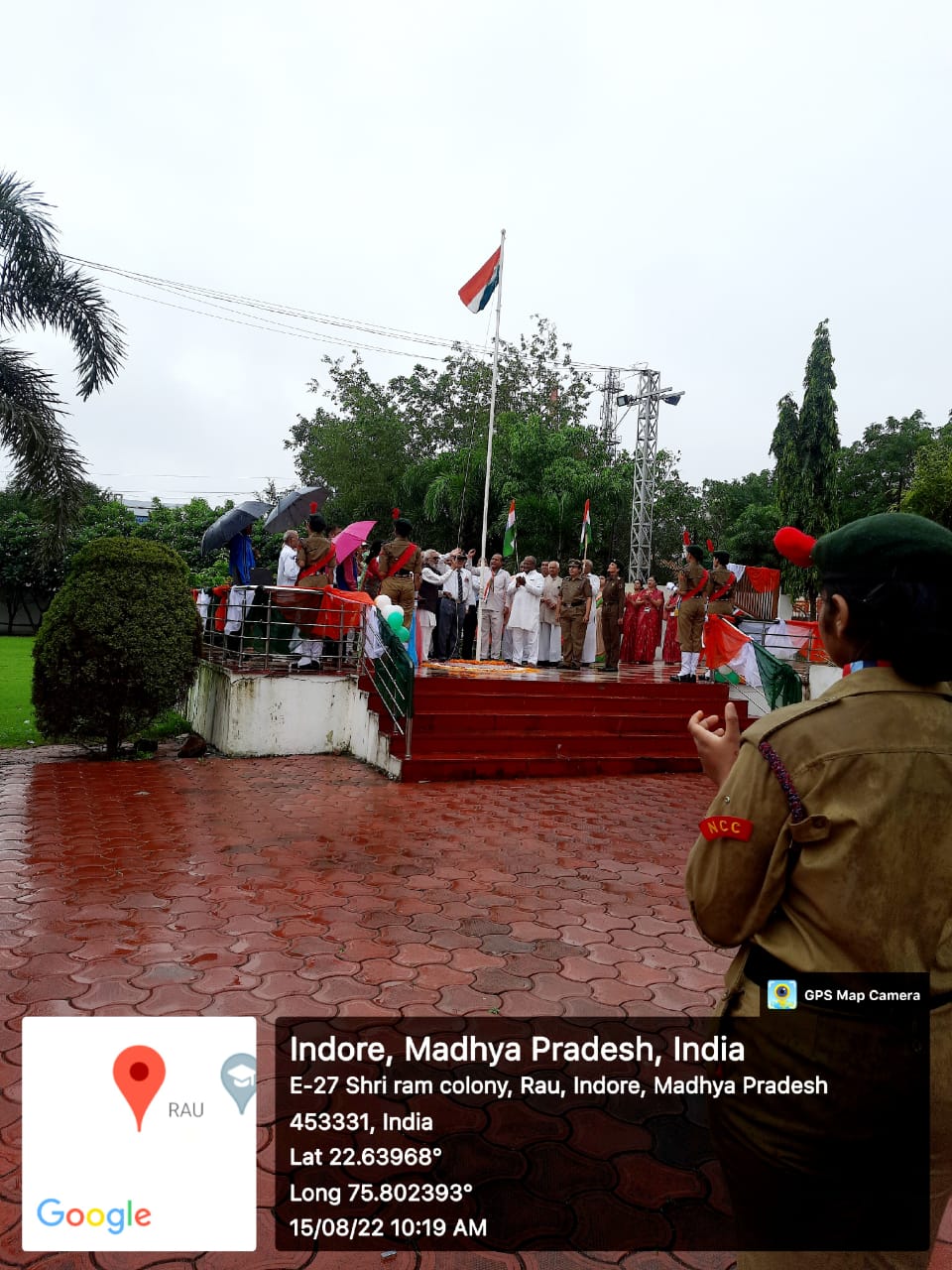 स्वतन्त्रता दिवस पर आयोजित कार्यक्रम का शुभारंभ ध्वजारोहण के साथ हुआ। मुख्य अतिथि श्री चितले ने ध्वजारोहण कर NCC कैडेट्स को भारत की एकता और अखंडता को बनाए रखने, अनुशासित एवं जिम्मेदार नागरिक बनने तथा निस्वार्थ भाव से सामुदायिक सेवा करने की शपथ दिलाई। ध्वजारोहण पश्चात सभी ने भारत माता की जय के जयकारों के साथ राष्ट्रगान गाया।