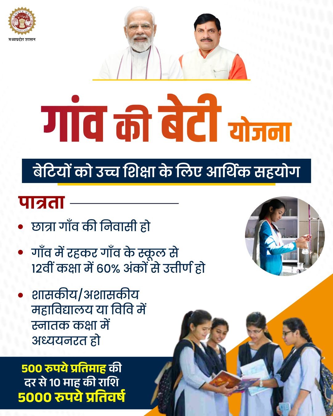 Gaon Ki Beti Scholarship 2025, Madhya Pradesh Government Scholarship, Shri Umiya Kanya Mahavidyalaya, Rural Girls Education Scheme, College Scholarship Indore, Higher Education Support, Gaon Ki Beti Yojana Form, MP Scholarship for Girls, G18 Form Counter